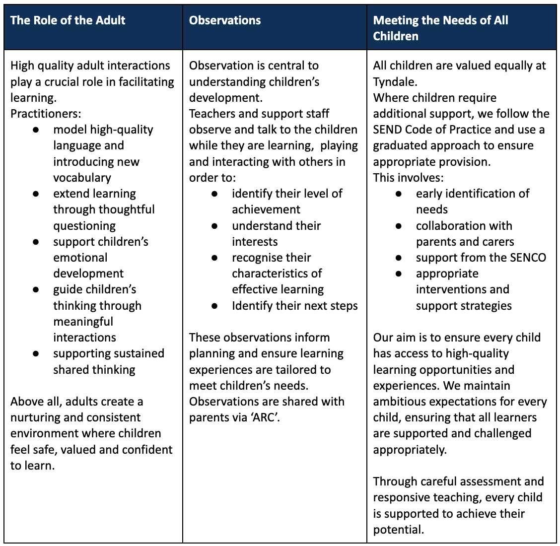 At Tyndale, learning in the Early Years is carefully structured through a balance of high-quality teaching, purposeful play and meaningful adult interaction.