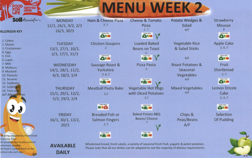 Hot, delicious and nutritious meals are cooked daily onsite by our fantastic Catering Team. Our menu can be found at the bottom of this page which is seasonal and repeats over a 2-week cycle.